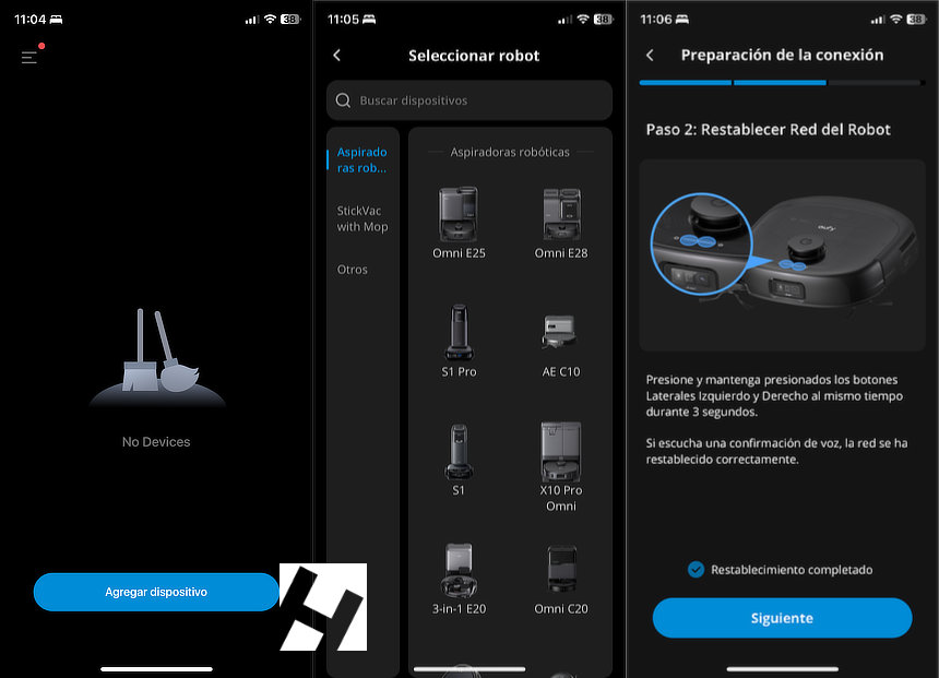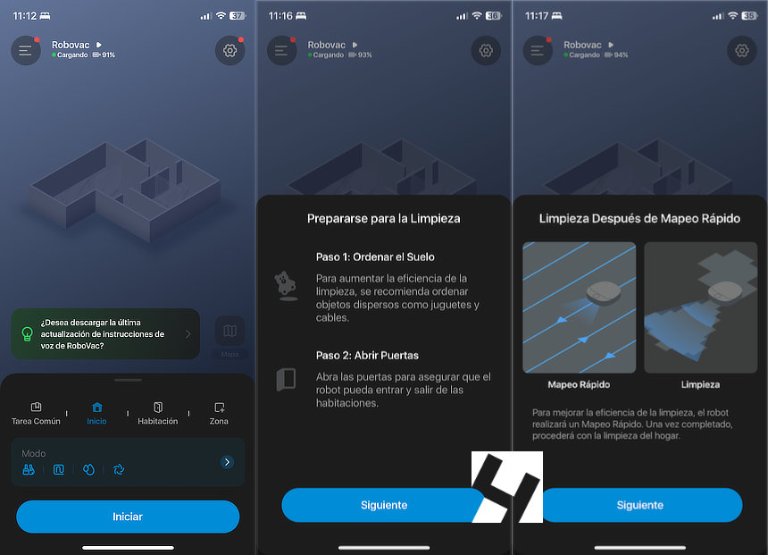 Como ya he comentado, el producto viene montado y esto reduce el tiempo de puesta en marcha y la complejidad para los novatos en la materia. Tan sólo hay que quitar los plásticos, cargar el depósito de agua, colocar la rampa y enchufar la estación. Por último situar al robot en la base y lanzar la app eufy Clean, disponible para Android e iOS. eufy Clean se puede instalar tanto en teléfonos, como en tabletas.