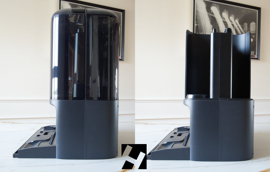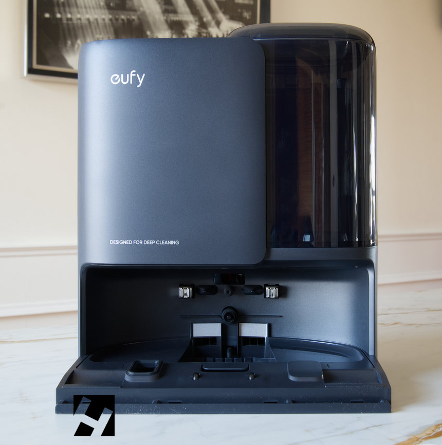 Está fabricada íntegramente en plástico y de un color gris oscuro. A diferencia del resto de los modelos de eufy, los depósitos de agua son ahora transparentes y esto ha modificado el clásico diseño utilizado en los modelos X10 Pro.