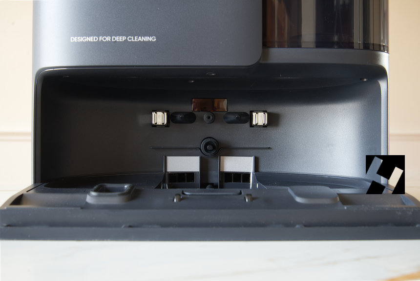 En la parte inferior se donde aparca el robot, y por tanto están las tomas eléctricas, de agua y de residuos sólidos. Pocas novedades en este aspecto.