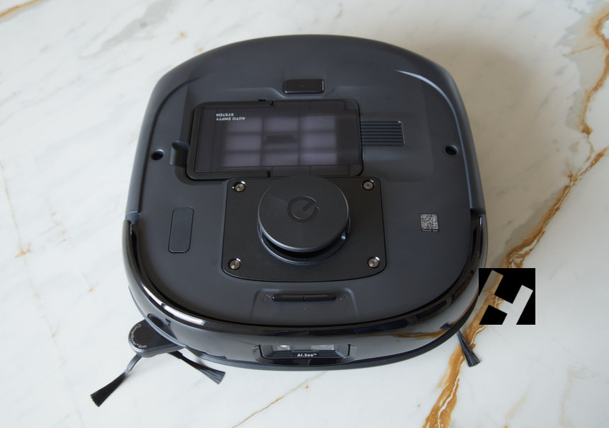 Pasamos al robot el cual cuenta con la tecnología HidroJettm y una capacidad de succión de 20.000 Pa. Esta succión es mas del doble que sus predecesoras, las cuales alcanzaban los 8.000 Pa. En el frontal incorpora tecnología RGB que le permite identificar objetos gracias a sus funciones IA. Este reconocimiento también permite detectar manchas grandes, con el fin de dar mas pasadas por la zona accidentada.