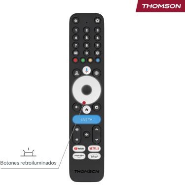 Además, ahora incorpora el mando a distancia retroiluminado de THOMSON, que facilita la navegación y el control de la experiencia de entretenimiento, incluso en entornos con poca luz.