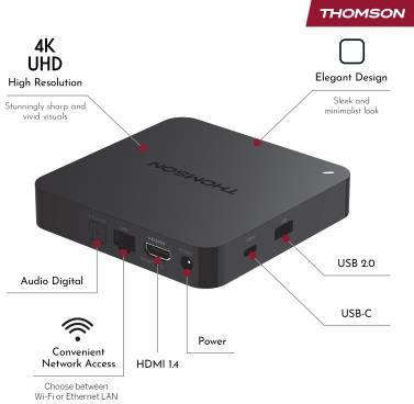 Todos los dispositivos THOMSON Streaming Box 245 cuentan con una garantía de 3 años para un rendimiento sin preocupaciones. En el Centro de descargas se pueden encontrar imágenes del producto en alta resolución, fotografías de estilo de vida y hojas de datos.